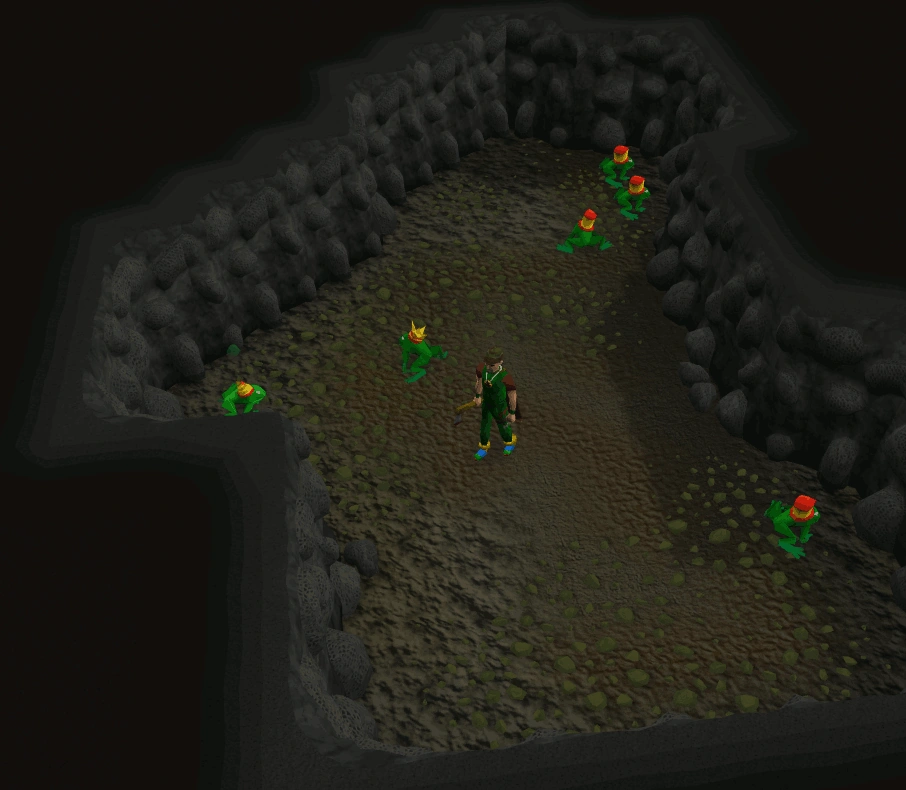 When the player got teleported to the Land of the Frogs, they had to speak to the Frog Herald, who told them how to solve this Random Event. The player then had to speak to the frog with the crown, and kiss him/her. If they talked to any other frog in that area he would tell them that is the wrong one and thus has to do over four more times. If the player fails them all he/she would be turned into a frog. The only way out was talking to the prince/princess and getting teleported to a random location.