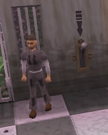 Players spoke to him for a reminder to set their recovery questions and then received some coins or items. However, if ignored, he would attack the player. Running away resulted in the Security Guard pursuing the player until they were a good distance away. The Protect from Melee prayer nullified all damage by him. A Security Guard could be killed, but didn't drop anything.