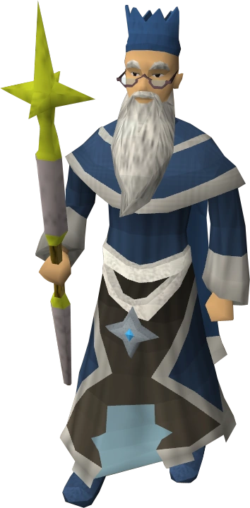 The Wise Old Man holding a Saradomin staff.